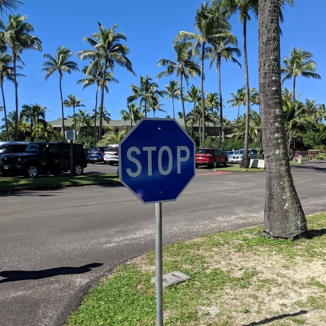 Где-то на Гавайях есть знак «стоп» синего цвета.
