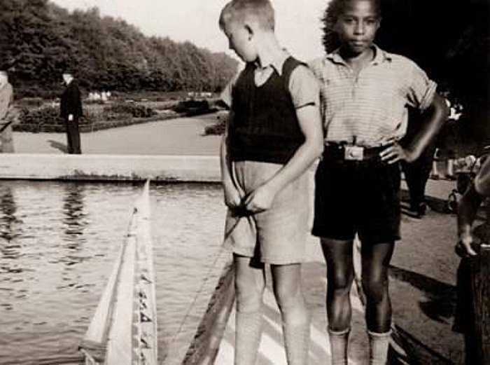 Казалось бы, что так делал практически каждый немецкий мальчишка тех времен. Но наш герой был чернокожий! Этот момент вошел в историю, поскольку учитель Ханса-Юргена Массакуа в тот день сфотографировал его.