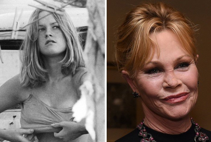 На внешнем виде Мелани больше всего сказался ее развод с Антонио Бандерасом, с которым они прожили вместе 20 лет. Затем несколько неудачных платических операций полностью изменили женщину и, пожалуй, совсем не в лучшую сторону.