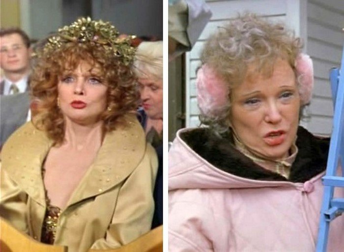 Признанная красавица Людмила Гурченко всегда тщательно следила за собой. Даже пожилой она никогда не позволяла себе выйти на публику замарашкой. Но в «Старых клячах» Людмила Марковна великолепно сыграла бойкую торговку с рынка, без колебаний позволив гримерам и стилистам превратить ее в порядком побитую жизнью женщину.