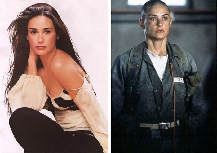 В 1997 году для съемок в фильме «Солдат Джейн» Деми Мур побрилась налысо. Саму ленту успешной назвать было сложно, но исполнительница главной роли после нее прославилась моментально. В самом деле, мало какая актриса способна научиться отжиматься на одной руке ради вживания в образ!