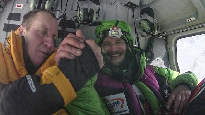 На запрос о помощи мигом откликнулись. Вертолет с четырьмя альпинистами остановился на высоте 4 850 м в вечернее время, дальше Денис Урубко и Адам Белецкий буквально побежали спасать скалолазов. Ярослав Батор и Петр Томала взяли на себя доставку тяжелого оборудования как можно выше и как можно дальше.