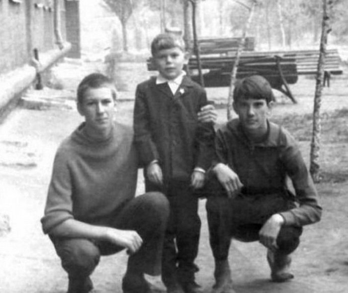 Леонид Гайдай позирует для фото вместе с братом Сашей и сестрой Августой.