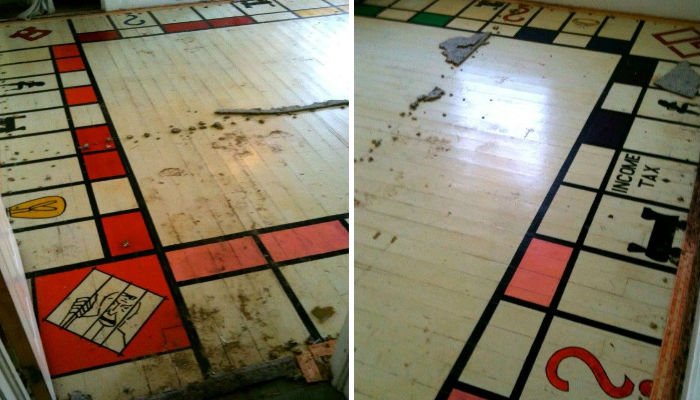 Ниленд Ньюэл из Калифорнии захотел поменять старый пол в гостиной. Когда он сорвал с пола старый ковролин, очень удивился. Под тканью всё это время была нарисована доска для игры «Монополия».