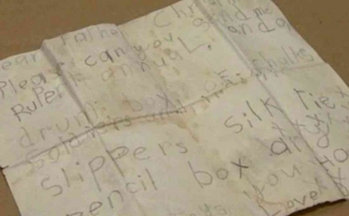 Во время Второй мировой войны маленький мальчик по имени Дэвид написал письмо Санта-Клаусу и спрятал его в дымоходе. Спустя 72 года его нашел Льюис Шоу, который занимался сносом того самого дома. Мужчине удалось найти Дэвида в соцсетях и вернуть письмо владельцу.