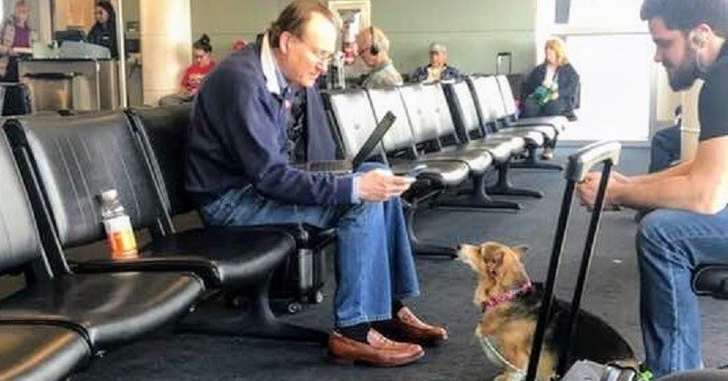 В аэропорту собака вырвалась из рук хозяйки и бросилась к незнакомцу. Мужчина достал телефон…