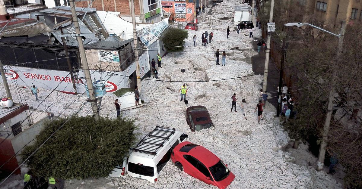 Мексиканский город Гвадалахару посреди лета засыпало 1,5-метровым слоем льда