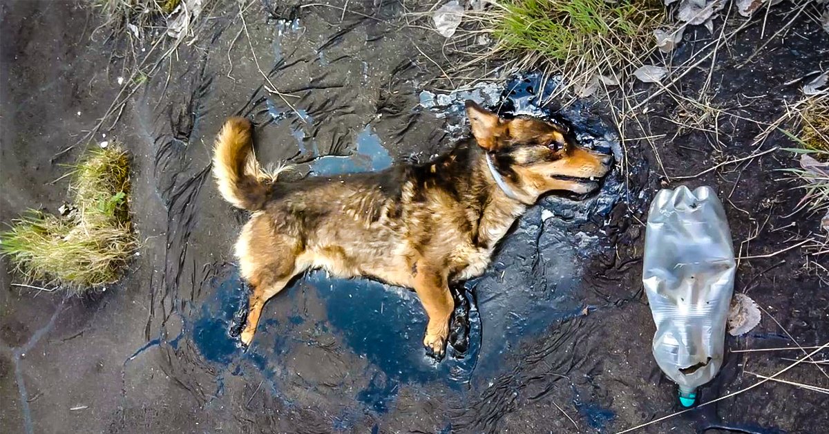 Песик увяз в гудроне и звал на помощь 5 дней. Ребята вытянули его с того света