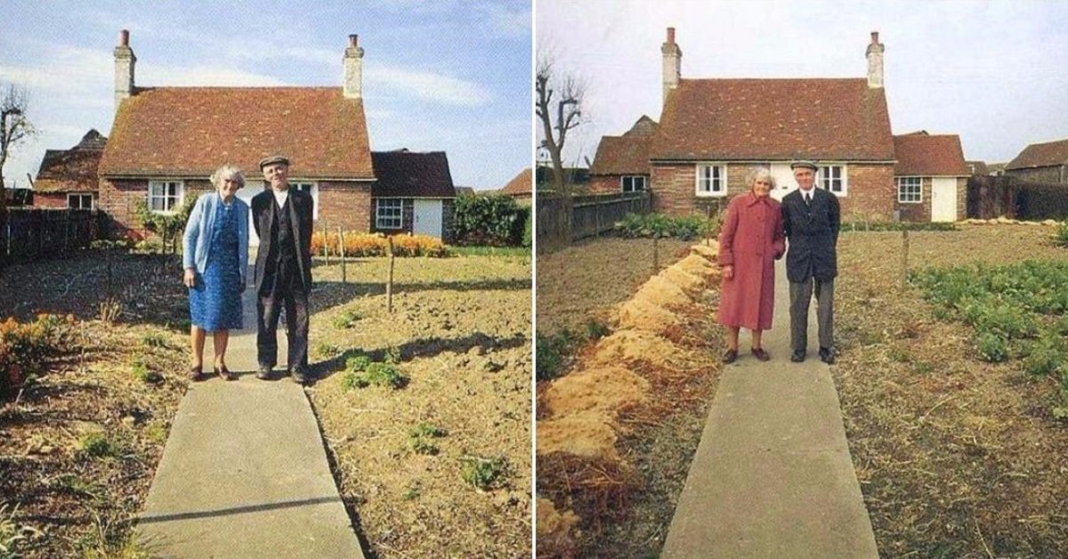 Пожилая пара регулярно фотографировалась на фоне своего маленького садика