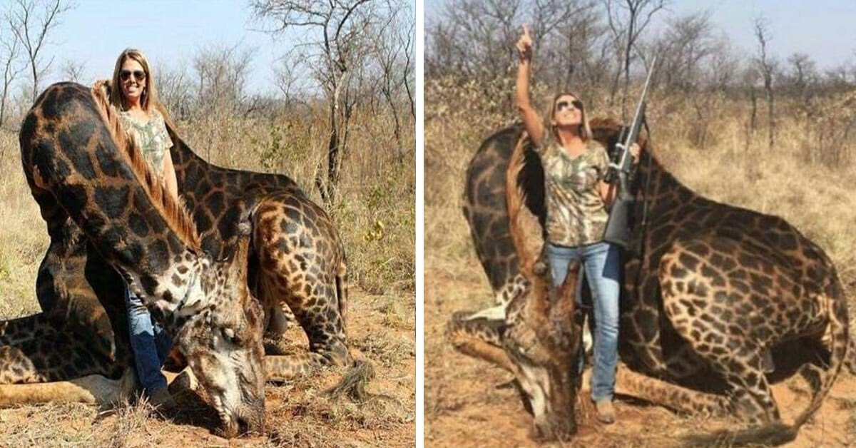 Охотница расправилась с редким жирафом на сафари и сделала фото на память