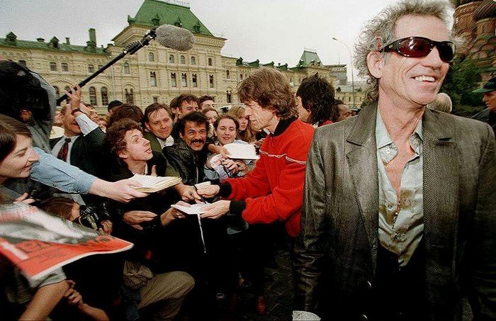 Группа Rolling Stones раздает автографы после концерта в Москве, 1998 год