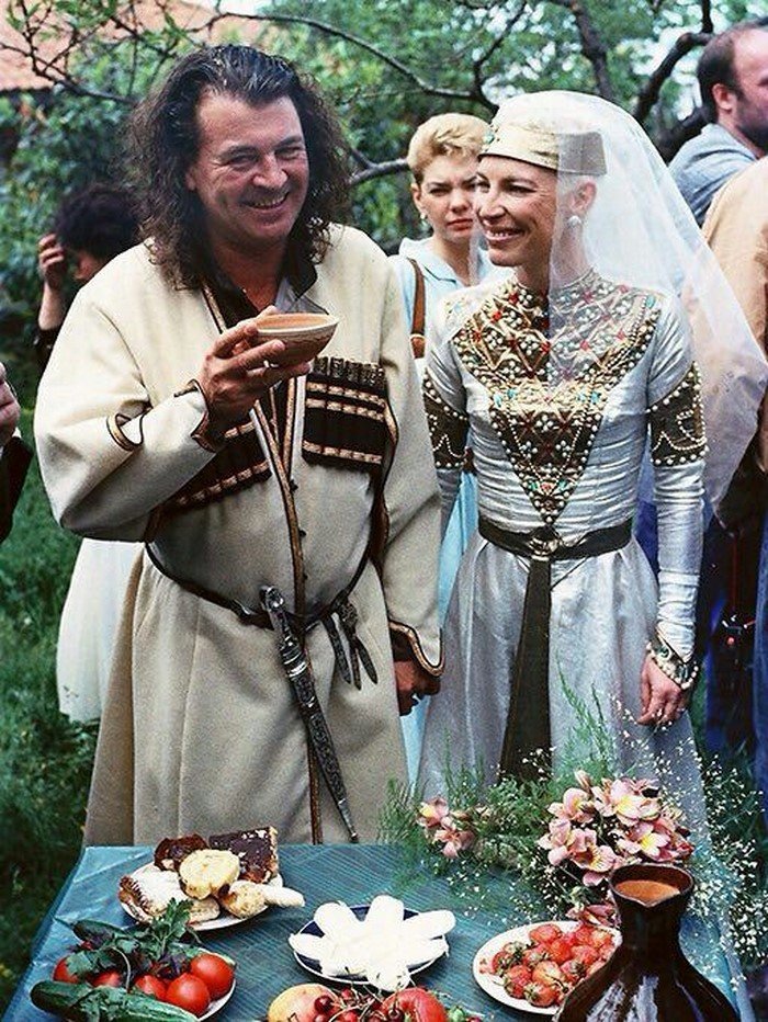 Солист группы Deep Purple Иэн Гиллан примерил национальную одежду кабардинцев по время пребывания в Нальчике, 1992 год