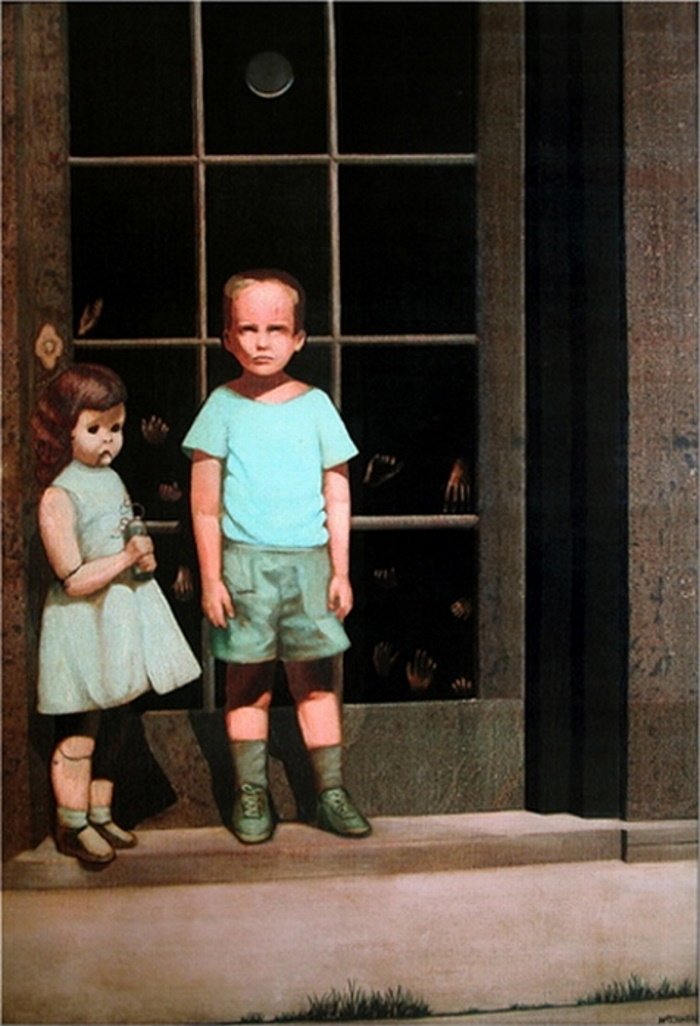Многие считают данную картину самой загадочной и пугающей в мире. История ее создания окутана мифами, но в реальности всё довольно прозаично. Стоунем вдохновлялся своей детской фотографией, на которой он в 5 лет позирует перед камерой вместе с соседской девочкой.