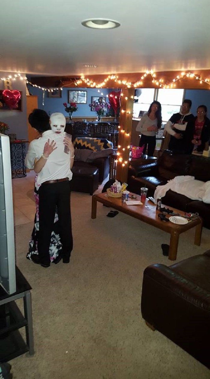 Подруги взяли Коррин под руки, повели ее надевать выпускное платье и наводить марафет. Парни спустились в подвал дома и вместе с мамой девочки быстро превратили его в настоящий бальный зал.