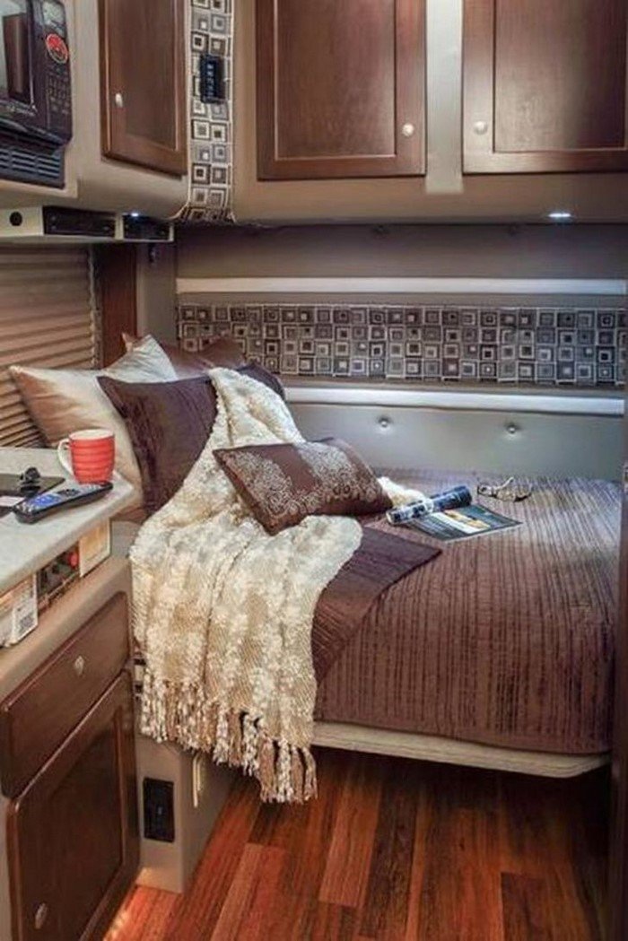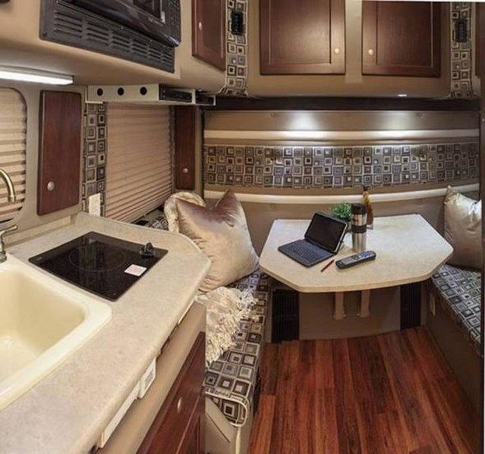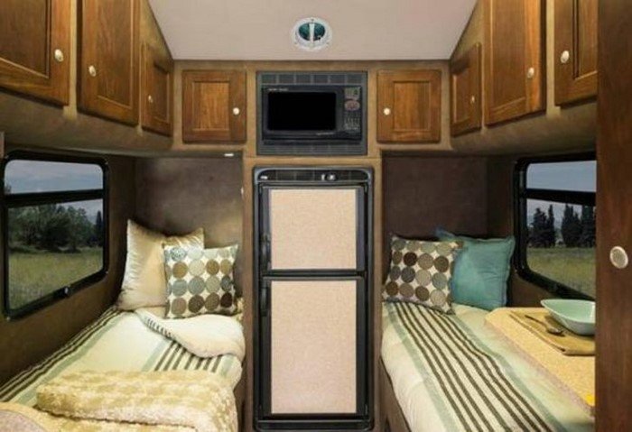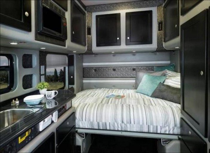 На самом деле жилой покойчик внутри грузовика весьма невелик. Однако создателям этого передвижного дома удалось сделать его по-домашнему уютным. Держу пари, путешествовать в таком тягаче — одно удовольствие!