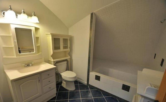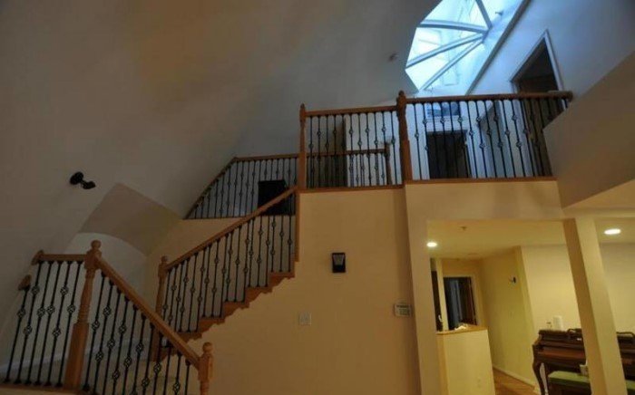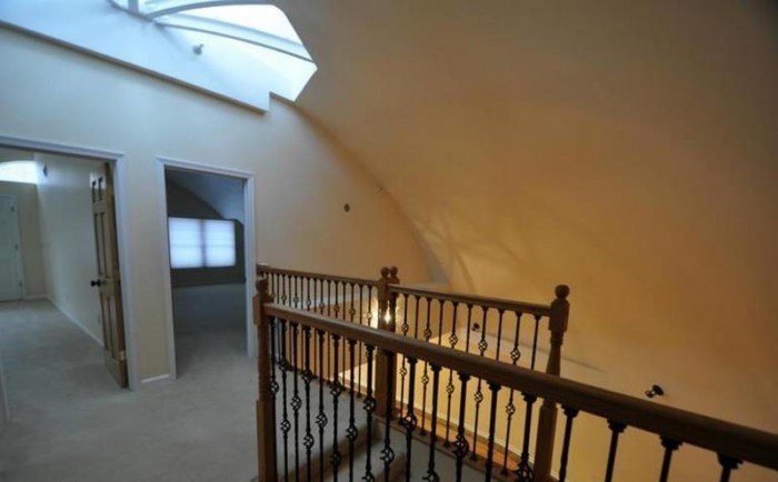 Причудливый внешний вид компенсируется всеми удобствами современного мира. Здесь есть 3 спальни, 2 ванные комнаты, гараж на две машины, камин и кухня со столовой.
