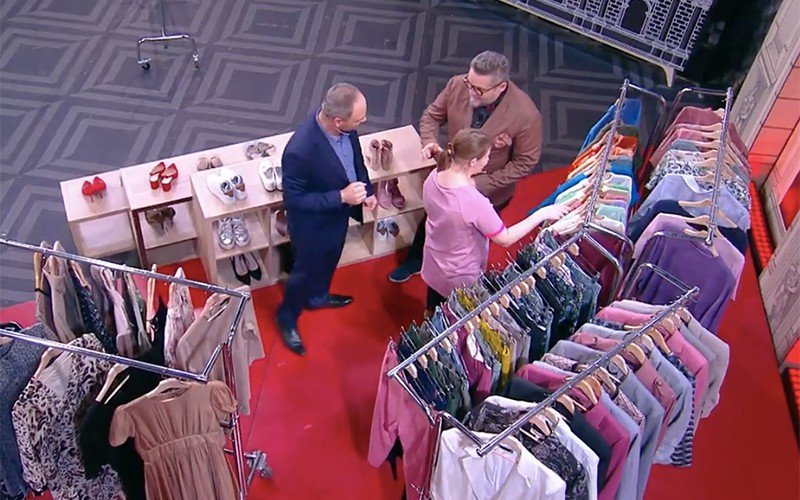 Далее супругам предложили отправиться в импровизированный магазин «Модного приговора» и самостоятельно подобрать наряды для нового образа Валерии. Но так как герои немного растерялись, им на помощь пришел Александр Васильев.
