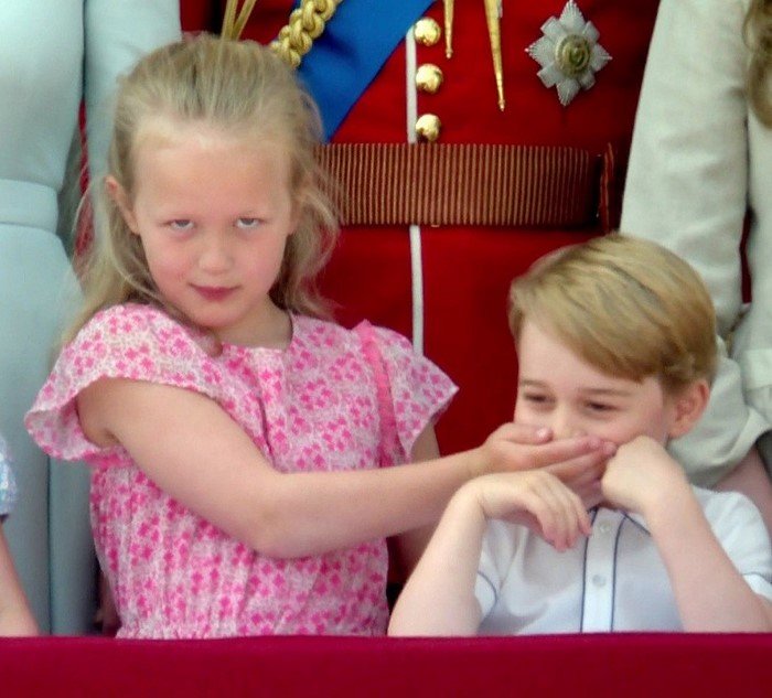А принц Джордж так много болтал, что его маленькая кузина не выдержала и закрыла мальчику рот рукой. Репортерам посчастливилось поймать в объектив именно этот момент!