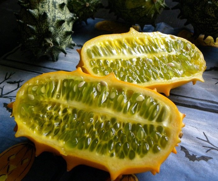 Кивано — что-то среднее между огурцом и дыней. Желеобразная мякоть новозеландского фрукта имеет ярко выраженный зеленый цвет и похожа на жидкость, вытекающую из раненых инопланетян в фильмах. Насыщенность витаминами и неповторимый вкус — визитная карточка этого фрукта.