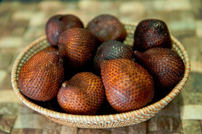 Салак — фрукт из Юго-Восточной Азии, напоминающий луковицу со змеиной кожей. Он чистится как вареное яйцо, но нужно быть осторожным, ведь острая кожура запросто разрежет кожу при неуклюжем обращении. Салак едят сырым, добавляют в салаты или варят из него компот.