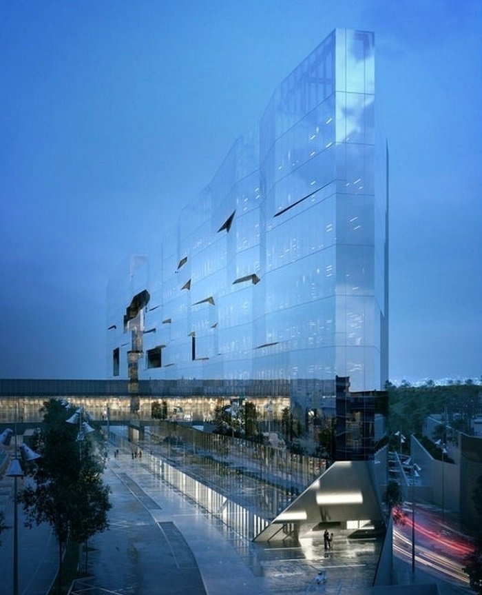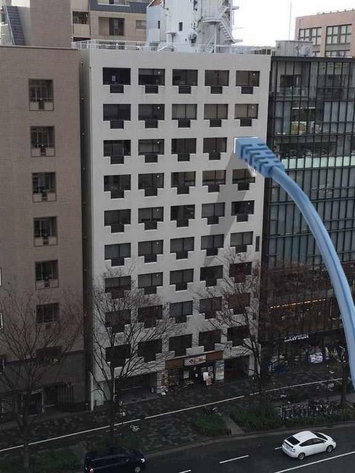 Здание сливается с пространством. Смог бы не заехать в него или не влететь в окно, прогуливаясь по офису и не ощущая границ здания?