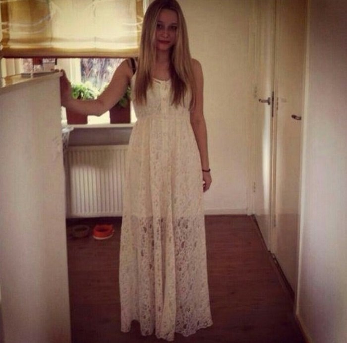 Если она и правда такого роста, то шея у нее, похоже, не короче, чем у жирафа