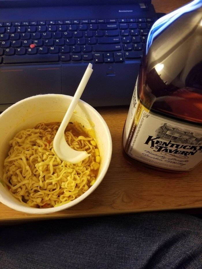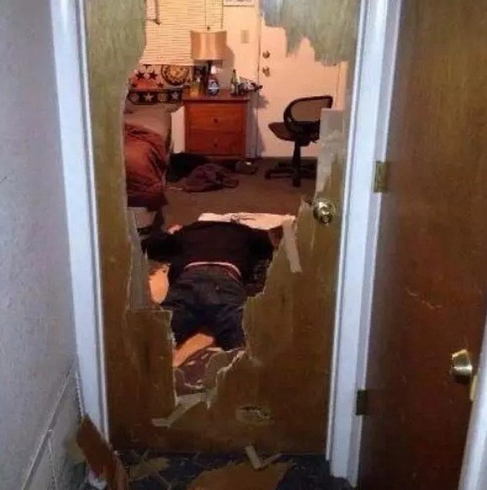 Парень был чересчур пьян, чтобы пойти в магазин за набором одноразовой посуды, поэтому в ход пошла вешалка для одежды
