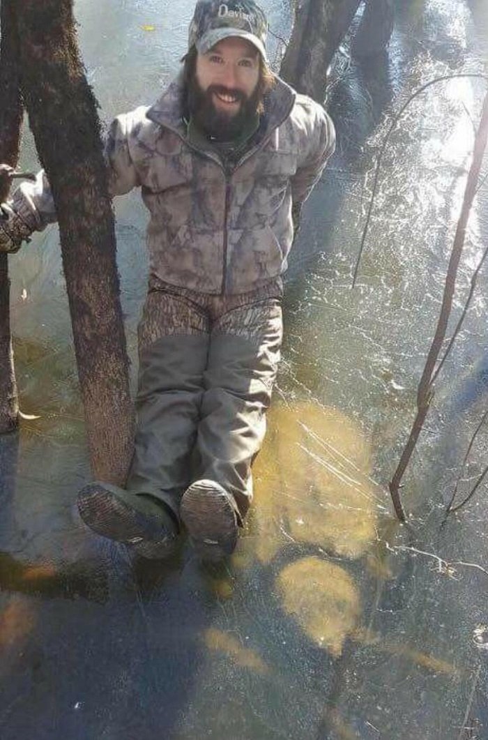 Посмотри внимательно на это фото. На нём бесстрашный бородач резвится на льду. Однако актер даже не подозревал, насколько он близок к смерти. Черепаха подо льдом выглядит устрашающе.
