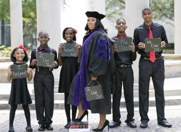 Мать-одиночка, которая растит 5 детей, закончила юридический факультет. «Я это сделала». «Я помогала». «И я тоже». «Я тоже помогала». «Я тоже». «Мы это сделали».