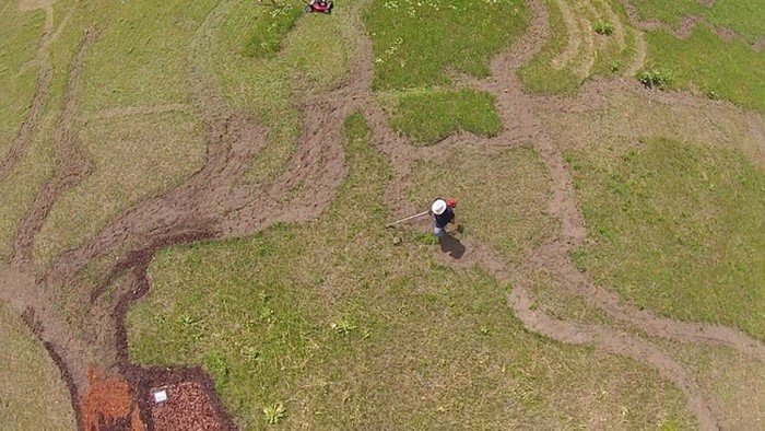 Кое-где Стэн, поплевав на руки, принимается махать лопатой. В других местах мужчина пересаживается в трактор. Чтобы добавить на картину яркие цвета, художник обычно использует землю необходимого ему оттенка.