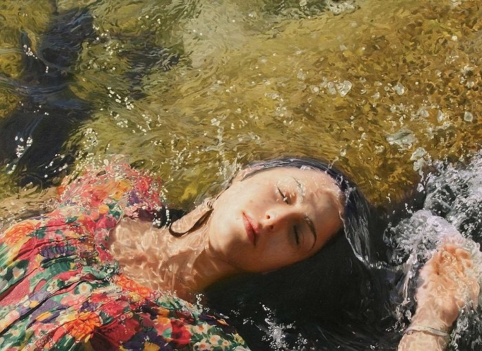 Игаль Озери увлеченно рисует женщин: вначале фотографирует их на лоне природы, редактирует изображения в Фотошопе, а после воссоздает снимок при помощи масляных красок. Вдохновение мастер черпает в эстетике прерафаэлитов, английских художников XIX века.