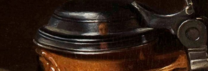 Голландская художница XVII века известна своими реалистичными натюрмортами. В одном из них она мастерски «спрятала» собственное лицо в отражении оловянной крышки кувшина. Также художница оставила свои инициалы на изображенном на столе ноже для масла.