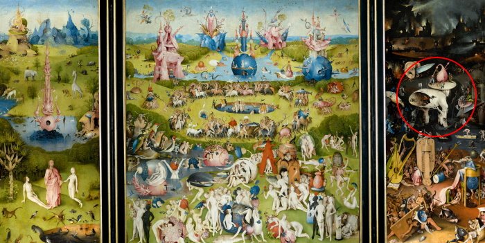 Даже подготовленному человеку будет сложно понять все секреты этой картины. Тем не менее, существует теория, что среди множества изображенных сюжетов Босх спрятал свой автопортрет.
