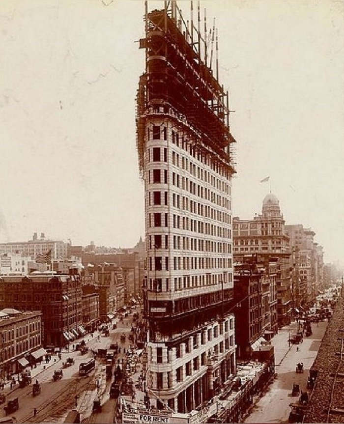 Даниел Бёрнем, который был родом из Чикаго, при проектировании этого здания хотел показать чикагский стиль архитектуры: высокие и узкие здания. Руководители компании «Фуллер», штаб-квартира которой находилась здесь, хотели, чтобы небоскреб назвали в честь основателя фирмы Джорджа Фуллера. Но из-за формы, напоминающей утюг, народ дал зданию свое имя.