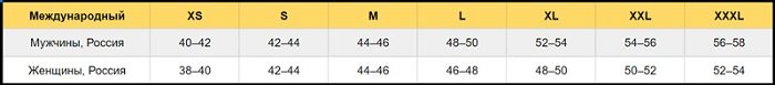 По этой таблице можно соотнести свой российский размер с буквенными обозначениями международной системы.