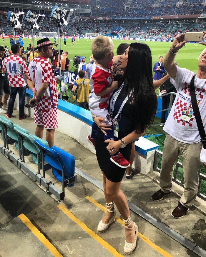 На футболке хорватского защитника красуется номер «21», у Иваны есть такая же футболка с тем же номером только с надписью «Миссис Вида». В Россию семья приехала в полном составе и, судя по всему, сынишка также болеет за свою сборную.