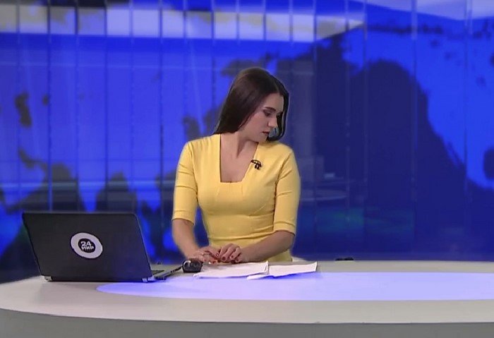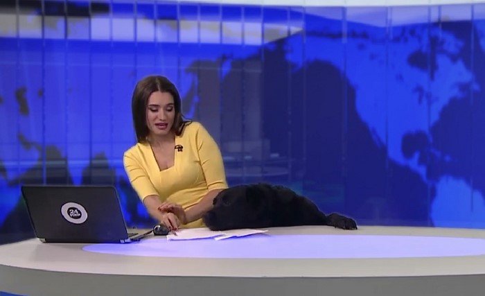 Женщина из нашего первого ролика поначалу держалась молодцом, хорошо поставленным голосом зачитывая известия и рассказывая о самых важных событиях дня. Но когда из-под стола вдруг послышалось шуршание и сопение, не выдержала даже суровая ведущая!