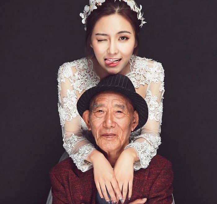 87-летний мужчина оказался родным дедом молодой китаянки. Ну а такую фотосессию устроила для старика сама внучка. Женщина надеялась хоть так исполнить заветное желание дедушки. И ведь у нее это удалось!