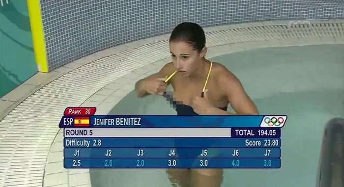 Флавия Зоккари не смогла выйти на старт из-за того, что ее костюм разошелся по швам в самом интересном месте. То ли сама спортсменка, покраснев от стыда убежала в раздевалку, то ли судьи приняли решение не допускать ее к старту. В общем, в любом случае соревнования для нее не задались.
