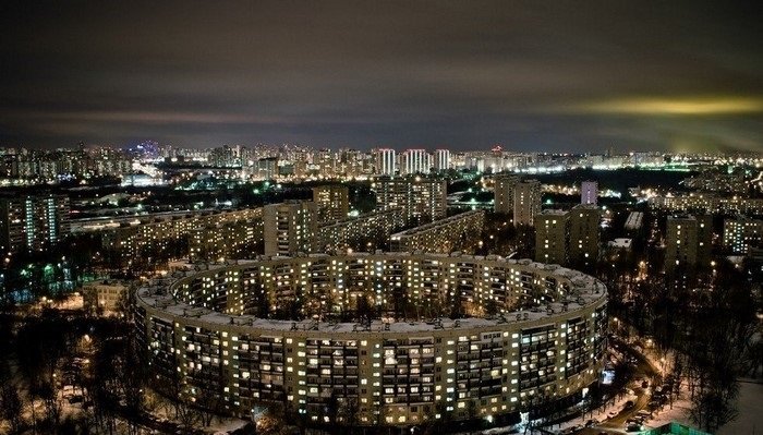 В 70-е годы Москва бурно застраивалась однообразными панельными девятиэтажками, но, несмотря на их простоту и дешевизну, было решено попробовать что-то новое. Архитектор Евгений Стамо и инженер Александр Маркелов придумали, как при помощи максимально допустимого при строительстве угла в 6 градусов построить круглые дома.