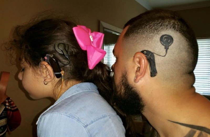 Мужчина сделал татуировку слухового аппарата, чтобы поддержать дочь