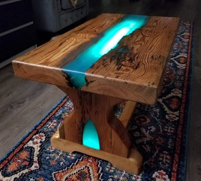 Столик с эпоксидной смолой и подсветкой, сделанный отцом моей девушки