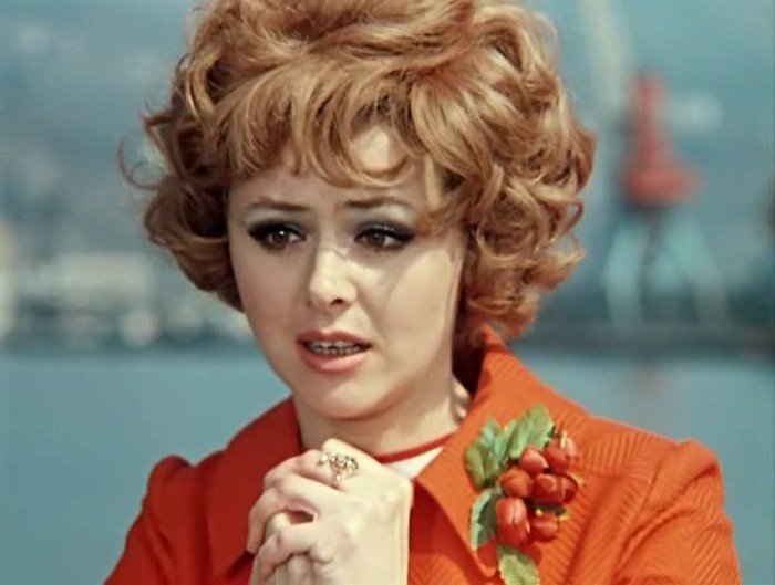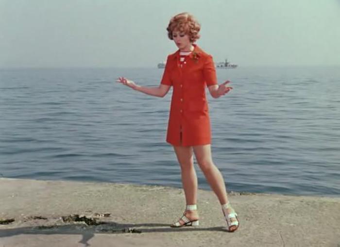 Зиночка в этой картине олицетворяла красавицу того времени. Ее наряды и прически вызвали восторг у телезрительниц. А это яркое оранжевое платье даже сейчас будет выглядеть круто.