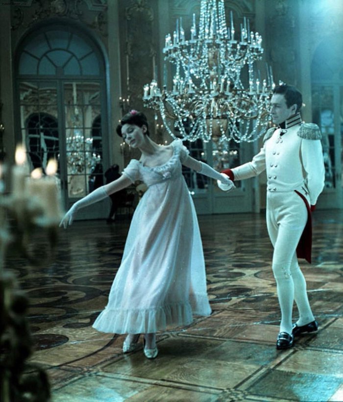 Наряды и декорации в фильме просто волшебны. Особенно по душе пришлось зрителям нежное платье Наташи Ростовой.