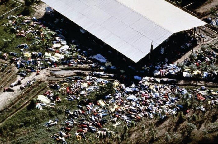 В 1978 году религиозная община, созданная Джимом Джонсом, покончила с собой по велению своего пастора. 918 человек одновременно выпили яд.