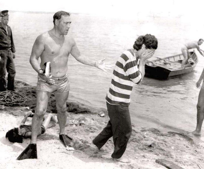 Фотографии миссис Томпсон в момент, когда спасатели обнаружили тело ее дочери. Томпсоны приехали на пикник на берегу моря, мать отвлеклась на несколько минут, а ее дети уже пропали. Спустя несколько минут найдут и тело ее сына.
