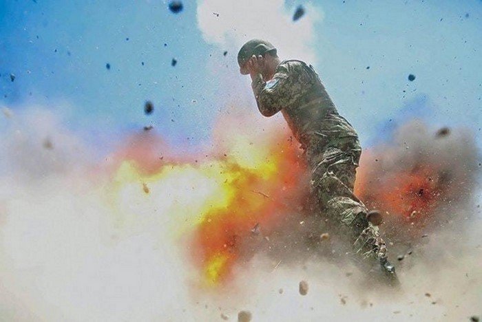 Женщина была военнослужащей в Афганистане, а этот снимок был сделан в то мгновение, когда разорвался минометный снаряд.