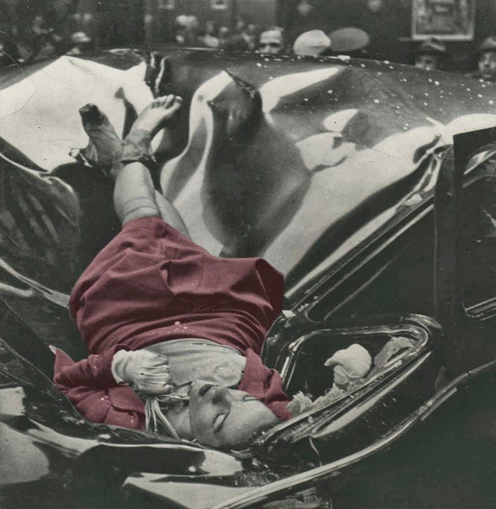 Этот снимок называется «Самое красивое самоубийство», сделал его фотограф Роберт Уайлс. Эвелин ушла от жениха и решила свести счеты с жизнью, спрыгнув со смотровой площадки Эмпайр-стейт-билдинг.