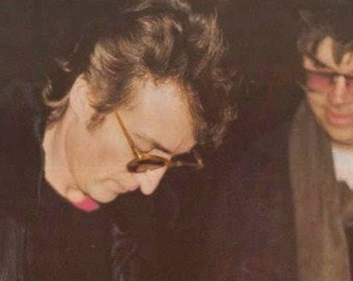 Легендарный музыкант дает автограф своему убийце Марку Чепмену за несколько часов до трагедии.