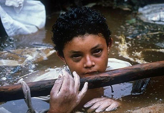 К моменту как был сделан снимок, 13-летняя девочка 60 часов провела под обломками, наполовину погруженная воду после извержения вулкана. К сожалению, спасатели так и не смогли ей помочь.